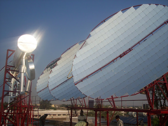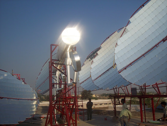 Solar parabolic concentrators raise the water temperature to 550C to 650C and convert it into steam for cooking purposes in the Cadets'Mess.The System was commissioned on 26 March 2009